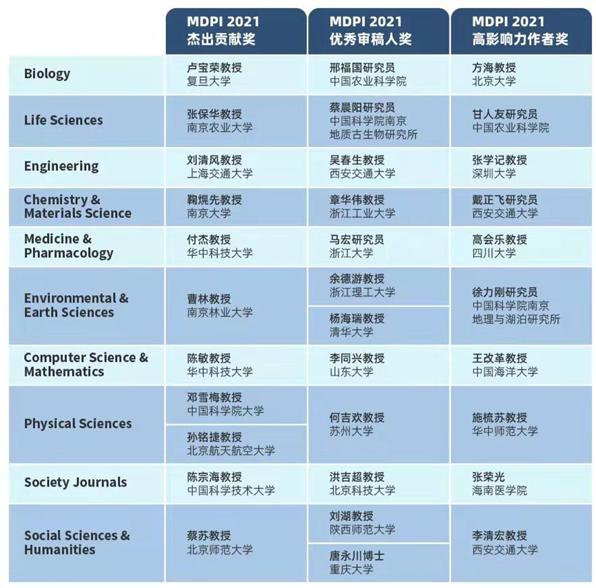 近日,全球第四大学术出版商MDPI为各学科优秀学者颁发“MDPI 2021杰出贡献奖”、“MDPI 2021优秀审稿人奖”以及“MDPI 2021高影响力作者奖”,我院施梳苏教授获评“MDPI2021高影响力作者奖”。