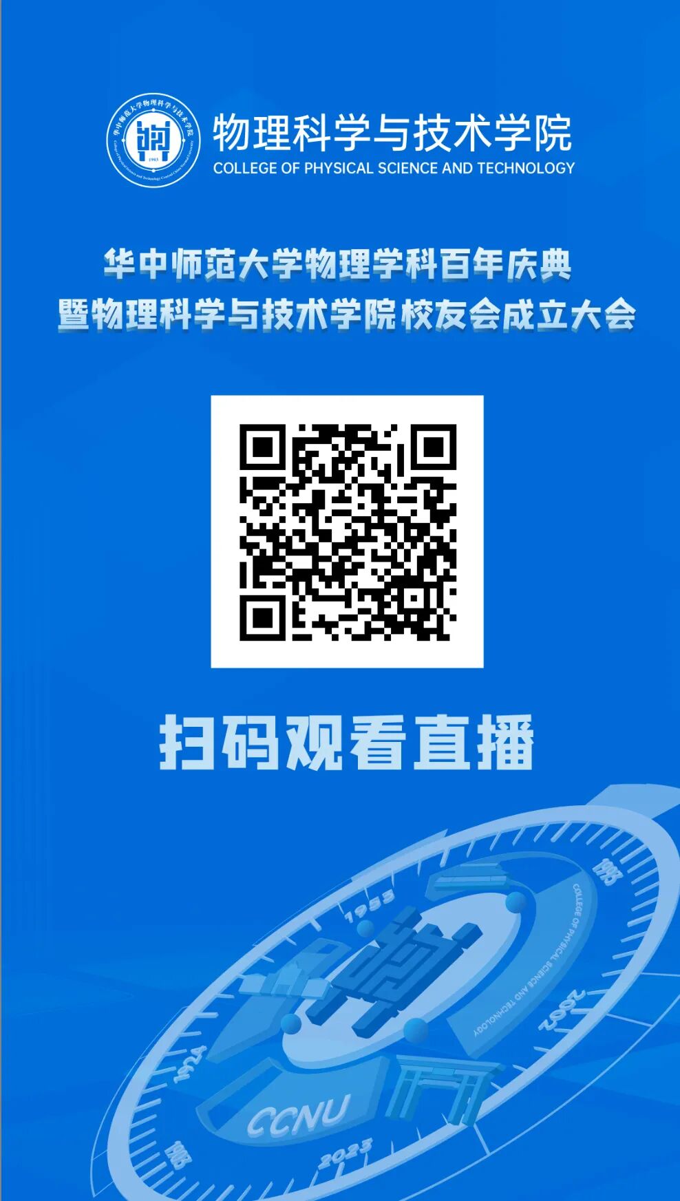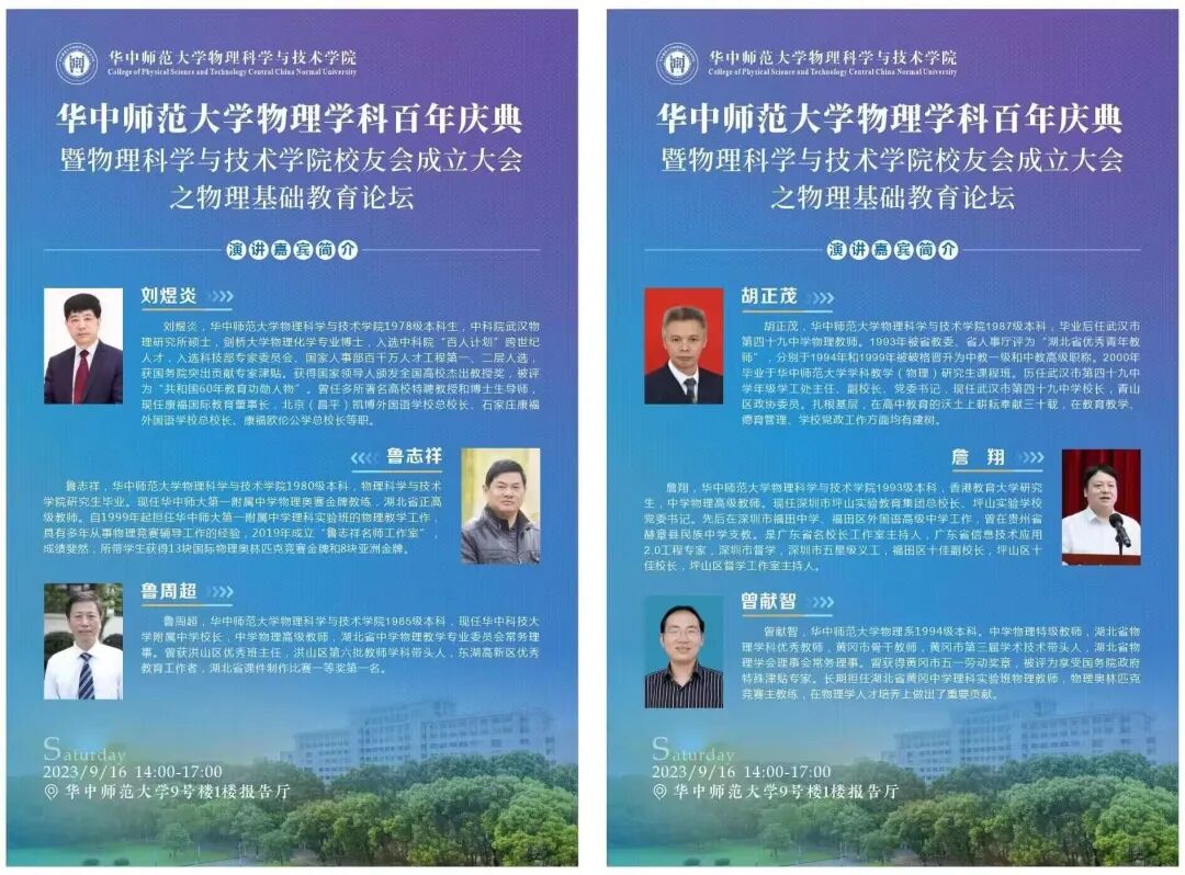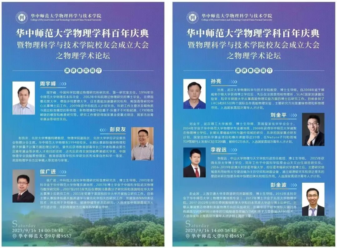 华中师范大学物理学科百年庆典暨物理科学与技术学院校友会成立大会举办在即!感谢你们的鼎力支持,在此我们邀请您明日线上线下共襄盛举。