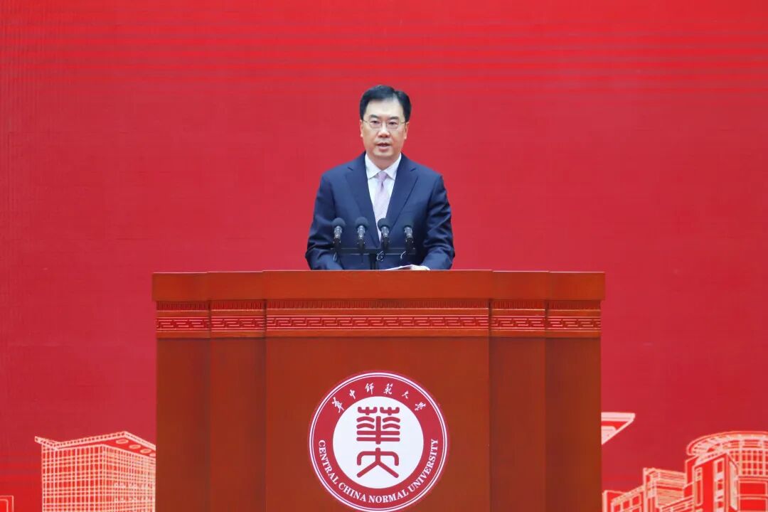 华中师范大学人文社会科学资深教授、中国近代史研究所所长马敏作为教师代表致辞。他表示,大学精神是一所大学的灵魂,也是一所大学穿越时空、最为持久的魅力之所在。回顾华师历史,“忠诚博雅、朴实刚毅”的华师精神和“求实创新、立德树人”的华师校训,是这所百年学府宝贵的精神财富之一。正是秉持这种精神,华师人在不同时期创造了无愧于时代的光辉业绩,为国家培养了无数栋梁之才。进入新时代,华师人要执着于至诚报国的理想,自觉肩负起国家使命和社会责任,全心全意为党育人、为国育才;要坚守教书育人职责,尽心竭力,躬耕杏坛,努力成为学生成长的领航员、学术创新的生力军;要播撒仁爱之心,在工作岗位上辛勤耕耘,用最朴实的行动诠释最伟大的爱心,以教育家为榜样,弘扬教育家精神,将华师精神传承下去,发扬光大。