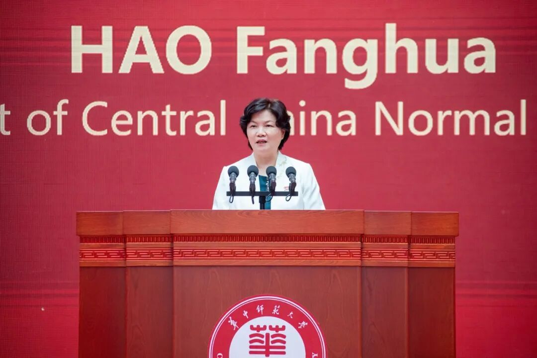 郝芳华回顾了华中师范大学120年来不断发展壮大,为国家富强、民族振兴、人民幸福不懈奋斗的壮阔征程。她表示,120年,华中师范大学始终坚守矢志报国的理想信念,一代又一代的华师人把生命的价值融入民族的血脉和历史的洪流,将个人命运与国家命运紧密相连;始终坚守强师强国的使命担当,从中华大学、华中大学在全国较早设立教育学科,到中原大学成立教育学院,再到新中国定名师范、发展师范,华师人始终坚守教育报国之心、履行教育强国之责、彰显华师大爱情怀;始终坚守自立自强的意志品质,从昙华林到桂子山,校名几度更替,校址几番迁移,校舍几次重建,从抗日烽火之中的举校西迁办学到如今形成以教师教育为特色,学科门类齐全、专业优势显著的综合性研究型大学发展格局,华师人自立之志不移、自强之心不改;始终坚守追求卓越的进取姿态,创建中国近代第一座公共图书馆、攻克绿色农药创制“卡脖子”难题、率先开展人工智能教育理论研究与技术攻关……华师人勇探发展新路,勇开风气之先,将“崇尚科学、追求卓越”贯穿于120年的奋进历程;始终坚守胸怀天下的价值追求,华师人秉承开放化办学理念,着力推进国际学术合作,积极开展全方位、宽领域的中外文化交流互鉴。