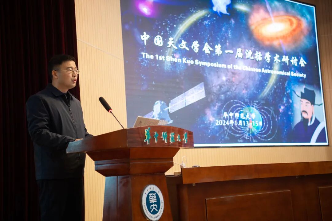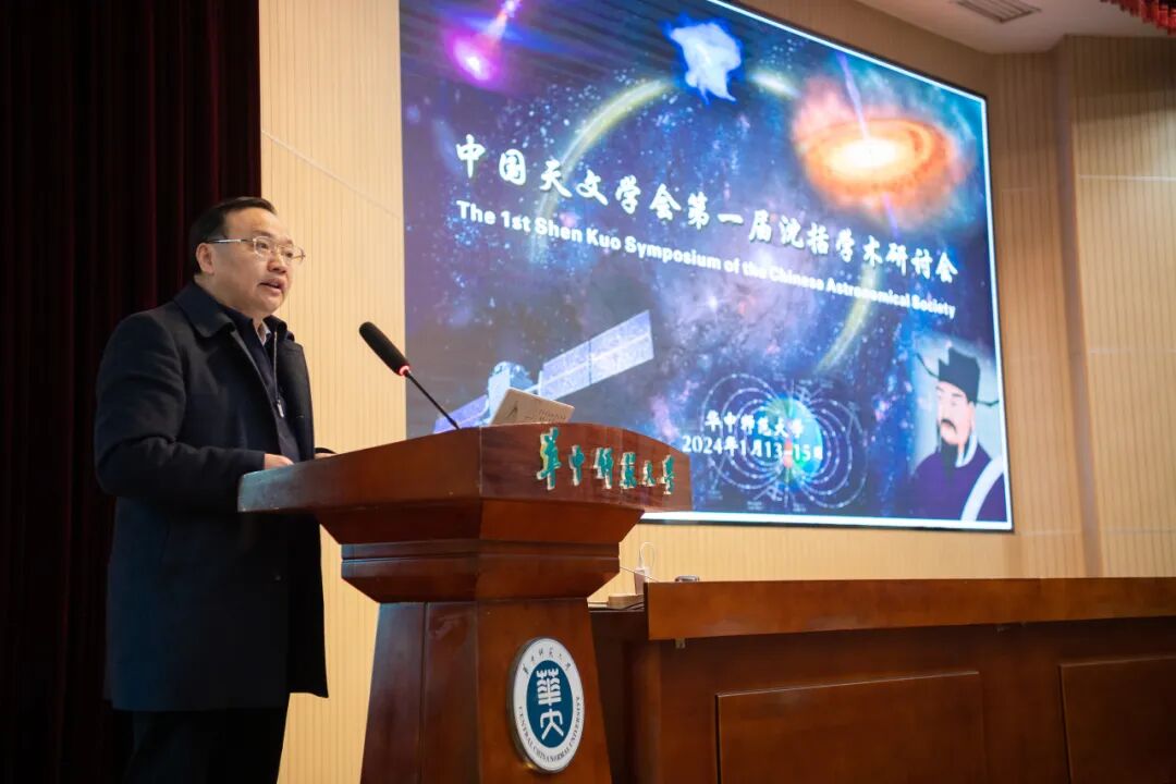 2024年1月13日,由中国天文学会空间天文和高能天体物理专业委员会主办、华中师范大学物理科学与技术学院承办的首届沈括学术研讨会在华中师范大学科学会堂盛大开幕,来自中国科学院国家天文台、紫金山天文台、云南天文台、上海天文台和南京大学、中国科学技术大学、北京大学、清华大学、华中师范大学等近50家科研院所和高校的260余名专家学者出席。此次会议的主题聚焦于我国近年来在空间天文观测领域所取得的重大进展(包括1月9日刚刚发射的爱因斯坦探针卫星)和高能天体物理领域的主要科学研究成果。