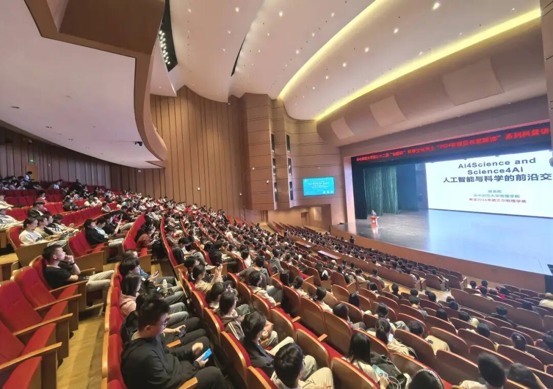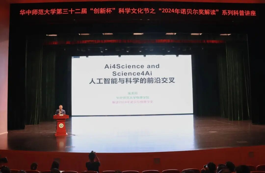 10月30日晚,我校第三十二届“创新杯”科学文化节之“2024年诺贝尔物理学奖解读”系列科普讲座物理学专场在新大学生活动中心举行。物理学院庞龙刚教授以《人工智能与科学的前沿交叉——解读2024年诺贝尔物理学奖》为题,开展专题科普讲座,带领同学们深入探索物理科学与人工智能技术的深度交叉与融合。物理科学与技术学院党委书记金新利参与活动,来自全校各学院的八百余名师生聆听讲座。讲座由物理学院团委书记刘瑾芮主持。