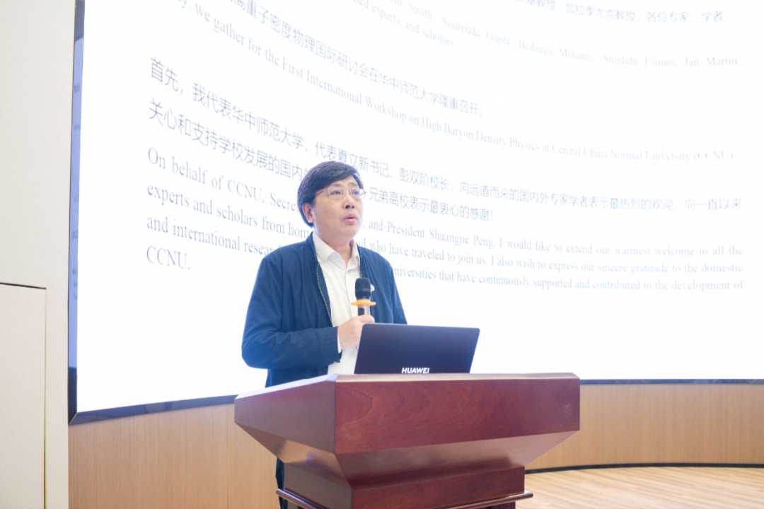 11月2日上午举行会议开幕式,华中师范大学副校长刘宏达致开幕词。刘宏达表示,科技进步是人类共同的追求,开放合作、携手同行才能实现共同繁荣发展。他希望会议的成功举办可以为国内外科研人员搭建起高水平的学术交流平台,为推动我国高重子密度物理相关研究走向国际前沿打下坚实基础。