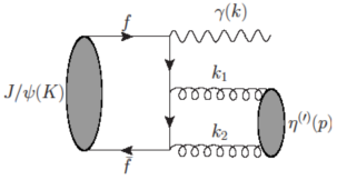 图1: 过程的领头阶费曼图。 左边对应夸克组分的贡献,右边对应胶子组分的贡献。 这些研究成果不仅澄清了 过程究竟是由非微扰还是微扰贡献占主导的问题,而且还进一步检验了微扰QCD在粲偶素能区的适用性。相关研究成果见【Nucl. Phys. B943 (2019) 114627】。