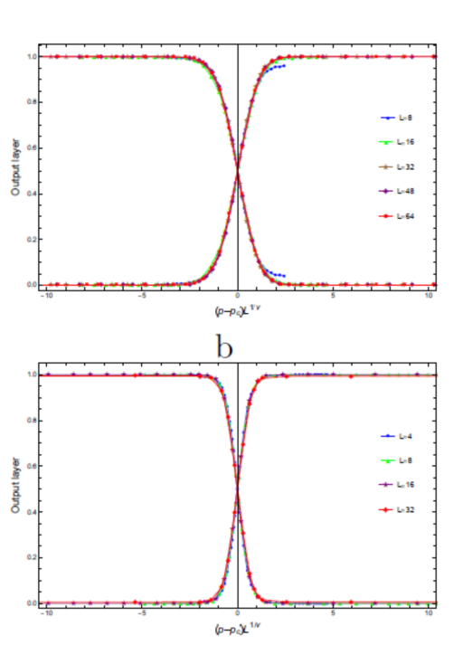 图2: 随 变化的关系图 (13)利用多顶夸克产生末态对Higgs宽度和顶夸克Yukawa耦合常数的测量 提出在强子对撞机LHC上通过四顶夸克产生,以及结合Higgs-顶夸克对的联合产生可以对Higgs 粒子的衰变宽度、顶夸克 Yukawa 耦合常数以及其CP性质进行测量和给出限制。在13 TeV LHC上,四夸克产生过程有能力在亮度为350/fb排除耦合常数大小跟SM相等的纯CP odd的Higgs,而在680/fb亮度下,有能力排除纯CP odd Higgs,无论耦合常数的大小。利用四顶夸克末态、Higgs-顶夸克对联合产生以及Higgs产生衰变到双光子末态的寻找,对现有的结果进行拟合,得到Higgs的宽度上限为3.04个标准模型理论值,这个结果可以跟ATLAS和CMS通过其他的方法得到的测量值比较。【Phys.Rev.D99 (2019)113003】 (14)LHC上三顶夸克产生的研究 研究了在13TeV LHC上三顶夸克产生的过程。指出三顶夸克的产生需同时具有味破坏中性流和味守恒中性流过程。采用有效6维算符来描述该过程,通过在LHC上对三顶夸克和四顶夸克产生过程的交叉分析,给出了有效算符系数的(预期)限制。【Phys.Rev.D100(2019)055035】 2019年度课题组发表论文(18)篇,主办国际会议0次,参加国际会议5人次。 高水平论文列表: 1. Model-independent observation of exotic contributions to decays, LHCb Collaboration Phys. Rev. Lett. 122 (2019) 152002 2. Observation of decays and precision measurements of the masses, LHCb Collaboration Phys. Rev. Lett. 122 (2019) 191804 3. Updated measurement of time-dependent CP-violating observables in decays, LHCb Collaboration Eur. Phys. J. C 79 (2019) 706 4. Muon in a -symmetric Two-Higgs Model Shao-Ping Li, Xin-Qiang Li, Ya-Dong Yang Phys.Rev.D99(2019)035010 5. mixing and decay in the NMSSM with the Flavour Expansion Theorem Quan-Yi Hu, Xin-Qiang Li, Ya-Dong Yang, Min-Di Zheng JHEP 1906 (2019) 133 6. transitions in the standard model effective field theory Quan-Yi Hu, Xin-Qiang Li, Ya-Dong Yang Eur.Phys.J.C79 (2019) 264 7. R-parity violating solutions to the anomaly and their GUT-scale unifications Quan-Yi Hu, Xin-Qiang Li, Yu Muramatsu, Ya-Dong Yang Phys.Rev.D99(2019)015008 8. Direct CP violation for in perturbative QCD Sheng-Tao Li, Gang Lü Phys.Rev.D99 (2019) 116009 9. The radiative decays of to the light mesons : a perturbative QCD calculation Chao-Jie Fan, Jun-Kang He Phys.Rev.D100 (2019) 034005 10. Revisiting the radiative decays in perturbative QCD Jun-Kang He, Ya-Dong Yang Nucl.Phys.B943 (2019) 114627 11. Studyi decays in supersymmetry with -parity violation Dong-Yang Wang, Ya-Dong Yang, Xing-Bo Yuan Chin.Phys. C43 (2019) no.8, 083103 12. Phenomenology of decays in a scalar leptoquark model Han Yan, Ya-Dong Yang, Xing-Bo Yuan Chin.Phys. C43 (2019) no.8, 083105 13. Twist-3 contributions to processes in perturbative QCD approach Cong Wang, Jun-Kang He, Min-Zhen Zhou Eur.Phys.J.C79 (2019) 765 14. Forward-backward asymmetry in the gauge-Higgs unification at the International Linear Colliders Shuichiro Funatsu Eur.Phys.J.C79 (2019) 854 15. GUT inspired gauge-Higgs unification Shuichiro Funatsu, Hisaki Hatanaka, Yutaka Hosotani, Yuta Orikasa, Naoki Yamatsu Phys.Rev.D99 (2019) 095010 16. Scalar leptoquark effects in the lepton flavor violating exclusive decays Jin-Huan Sheng, Ru-Min Wang, Ya-Dong Yang Int. J. Theor. Phys. 58(2019) 480 17. What can We Learn from Triple Top-Quark Production? Qing-Hong Cao, Shao-Long Chen, Yandong Liu, Xiao-Ping Wang Phys. Rev. D100 (2019)055035 18. Limiting top quark-Higgs boson interaction and Higgs-boson width from multitop productions Qing-Hong Cao, Shao-Long Chen, Yandong Liu, Rui Zhang, Ya Zhang Phys. Rev. D99 (2019)113003 新增或正在主持的基金情况: 自然科学基金青年项目(2项):张冬亮,袁兴博 自然科学基金面上项目(5项):杨亚东、陈绍龙、李新强、谢跃红,尹航, 自然科学基金重点项目(1项):谢跃红(主持),杨亚东(参与),李新强(参与) 国家重点研发计划项目(1项):谢跃红(主持),尹航(参与) 毕业的研究生人数及名单: 毕业的硕士生(8):戚温温、杨爽、何军、茹媛、周波,李少平,刘泽坤,高悦宁 毕业的博士生(5):颜涵,盛金环,何俊康,郑旻笛,王东洋 下个五年计划: 平稳有序发展,实验、理论方向各引进1-2人。 3. 高能碰撞唯象学 高能碰撞唯象学课题组(5名教师:吴元芳,杨纯斌,周代梅,许明梅,李治明)。 2019年度工作汇报 成果亮点: (1)通过固定点确定相边界 (张雁华 et. al., Phys. Rev. E 100, 052146 (2019)) 为了从实验上确定QCD相图,人们提出了相对论重离子碰撞的能量扫描(RIHC BES I, II)计划。希望通过对临界起伏敏感观测量(守恒荷的高价累积矩)的测量,从实验上定出QCD相图的位置。但是, 如何通过观测量在相平面的变化定量确定相边界?目前,尚没有具体可行的定量方法。 根据重整化群理论,在临界温度附近,有限尺度系统的观测量满足有限尺度标度规律,如图1(a)。因此,传统的做法是:先选定临界温度和指数,然后,将观测量在不同系统尺度、温度的结果画图1(a)所示的标度曲线图,如果,标度曲线成立,则所选临界温度和指数正确。显然,这样用肉眼所看的标度曲线的好坏具有不确定性,也无法看到观测量如何随临界参数变化。 我们知道,有限尺度标度规律也意味着固定点行为,即:不同系统尺度系统,其标度函数随温度的变化曲线在临界温度处交于一点,即固定点,如图1(b)。固定点行为不仅存在于二级相变的临界点,也存在于一级相变的相变线上,如图1(d)。一级相变和二级相变的差别在于临界指数,前者是整数,后者是分数。 .