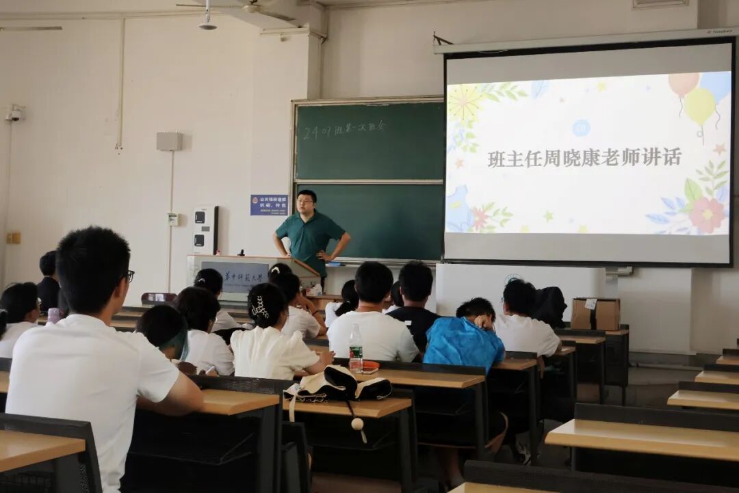 班会伊始,班主任周晓康结合自身经历,对同学们的大学生活提出了宝贵的建议。他强调了大学生活与高中生活的差异性,并以自己的求学之路为例,阐释了努力的重要性。最后,周老师以自己参与粒子物理实验项目的经历教育同学们:未来的大学学习生涯中,兴趣占据着举足轻重的地位。