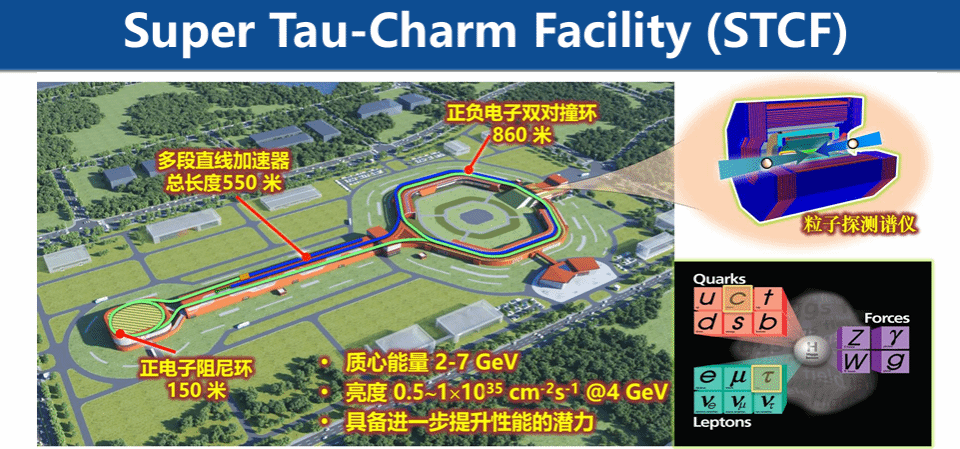 刘教授的报告从粒子对撞机的发展历程切入,系统阐释了第三代正负电子对撞机的科学意义与技术特征。他重点介绍了中国主导的超级陶粲装置(STCF)——一台设计亮度超过0.5~1×10³⁵ cm⁻²s⁻¹、能量覆盖2-7 GeV的新一代对撞机。该装置将在陶粲能区产生海量陶轻子和强子,为研究夸克禁闭机制和探索基础相互作用的时空对称性提供独特平台。