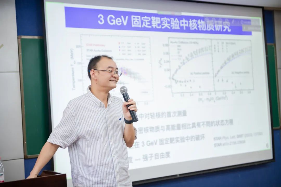 实验室主任汇报了实验室在2021年取得的主要进展和未来的发展设想。活跃在国际前沿的四位青年教授丁亨通、袁兴博、张晓明和陈凯分别代表夸克物质物理理论与核科学计算中心、粒子物理及唯象学、高能重离子碰撞实验、粒子探测技术及快电子学四个研究方向做了进展汇报。