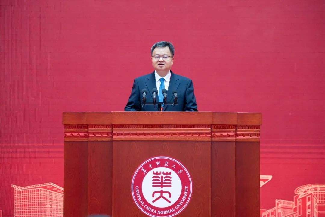 华中师范大学人文社会科学资深教授、中国近代史研究所所长马敏作为教师代表致辞。他表示,大学精神是一所大学的灵魂,也是一所大学穿越时空、最为持久的魅力之所在。回顾华师历史,“忠诚博雅、朴实刚毅”的华师精神和“求实创新、立德树人”的华师校训,是这所百年学府宝贵的精神财富之一。正是秉持这种精神,华师人在不同时期创造了无愧于时代的光辉业绩,为国家培养了无数栋梁之才。进入新时代,华师人要执着于至诚报国的理想,自觉肩负起国家使命和社会责任,全心全意为党育人、为国育才;要坚守教书育人职责,尽心竭力,躬耕杏坛,努力成为学生成长的领航员、学术创新的生力军;要播撒仁爱之心,在工作岗位上辛勤耕耘,用最朴实的行动诠释最伟大的爱心,以教育家为榜样,弘扬教育家精神,将华师精神传承下去,发扬光大。