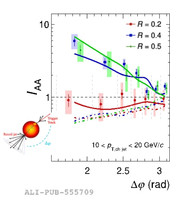 学院毛亚显教授在高能重离子碰撞实验的ALICE国际合作研究中取得新进展。毛亚显教授与来自英国利物浦大学、美国劳伦斯伯克利国家实验室、法国格勒诺布尔大学的科研人员合作,分析了ALICE国际合作组在大型强子对撞机(LHC)上采集的铅核-铅核对撞实验数据,利用触发强子对远端反冲喷注的产额及其方位角分布进行细致研究。结果发现,在低横动量区间,铅核-铅核中心碰撞中的反冲喷注产额相较于质子-质子碰撞呈现了极大增强趋势,同时,首次观测到反冲喷注方位角在大角度区间明显展宽。结合理论预言,低横动量反冲喷注的产额增强及方位角加宽现象,反映了高能部分子穿越热密物质时与之发生强烈相互作用作用损失能量,使得喷注的能量重新分布;另一方面,部分子在穿越热密物质时会诱发密度物质的激发响应,导致末态反冲喷注的方位角偏离原喷注方向,引起方位角的加宽。该实验结果为深入研究强相互作用机制、喷注能量损失机制以及介质响应提供了重要实验依据。研究成果于2024年7月9日发表在国际权威物理杂志《物理评论快报》和《物理评论C》上。