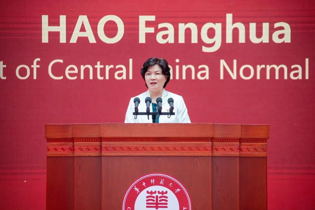 郝芳华代表华中师范大学,向长期以来关心和支持学校发展的社会各界人士表示衷心的感谢,向莅临学校和出席大会的领导嘉宾表示诚挚的欢迎。