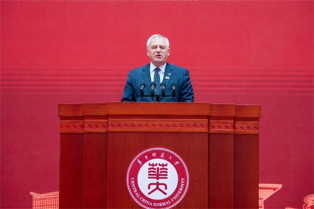 国际合作伙伴代表、澳大利亚纽卡斯尔大学校长亚历克斯·泽林斯基在致辞中高度肯定了华中师范大学120年来在人才培养、科学研究、国际文化交流所作的贡献。希望华中师范大学在建校120周年这个新的起点上,致力于深化国际合作,促进跨文化交流,取得更多辉煌成就。